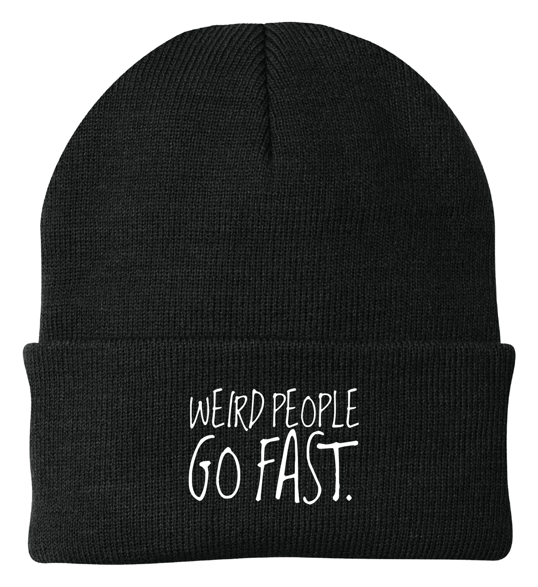 It seems that all of my fastest friends are a bunch of weirdos. In fact, I’ve come to find I like surrounding myself with weird people. They’re fun, quirky, and know how to have a good time. This beanie is sure to keep you warm and is for all the fast weirdos in the world.